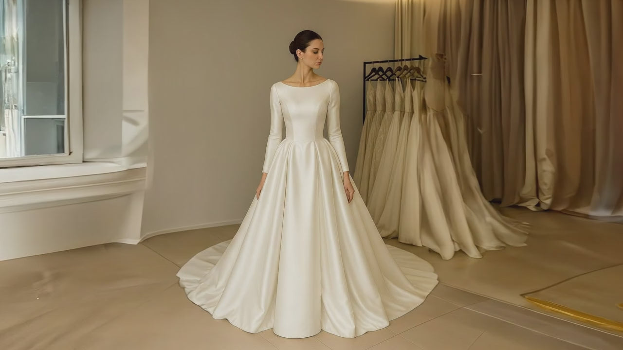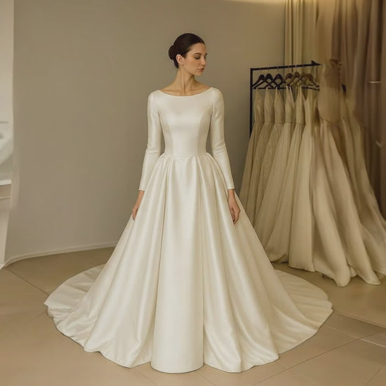 The Anastasia – Long Sleeve Satin Wedding Dress with Full Skirt